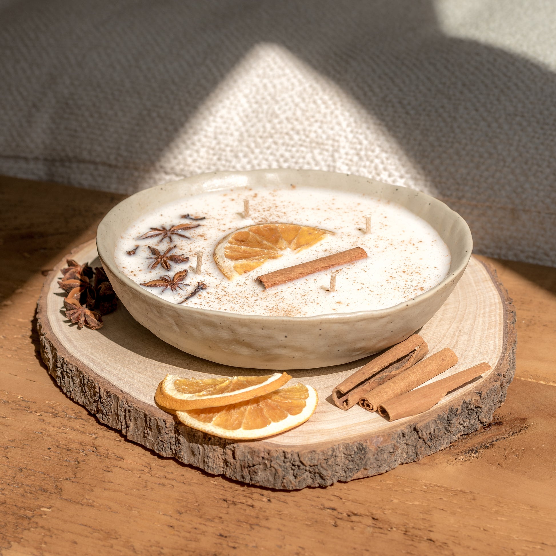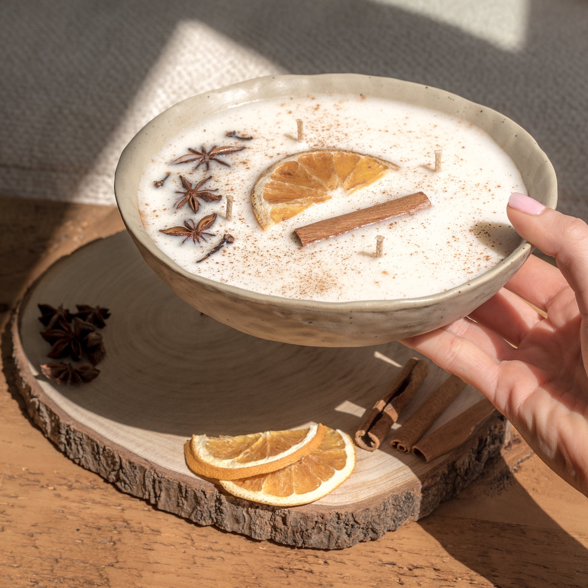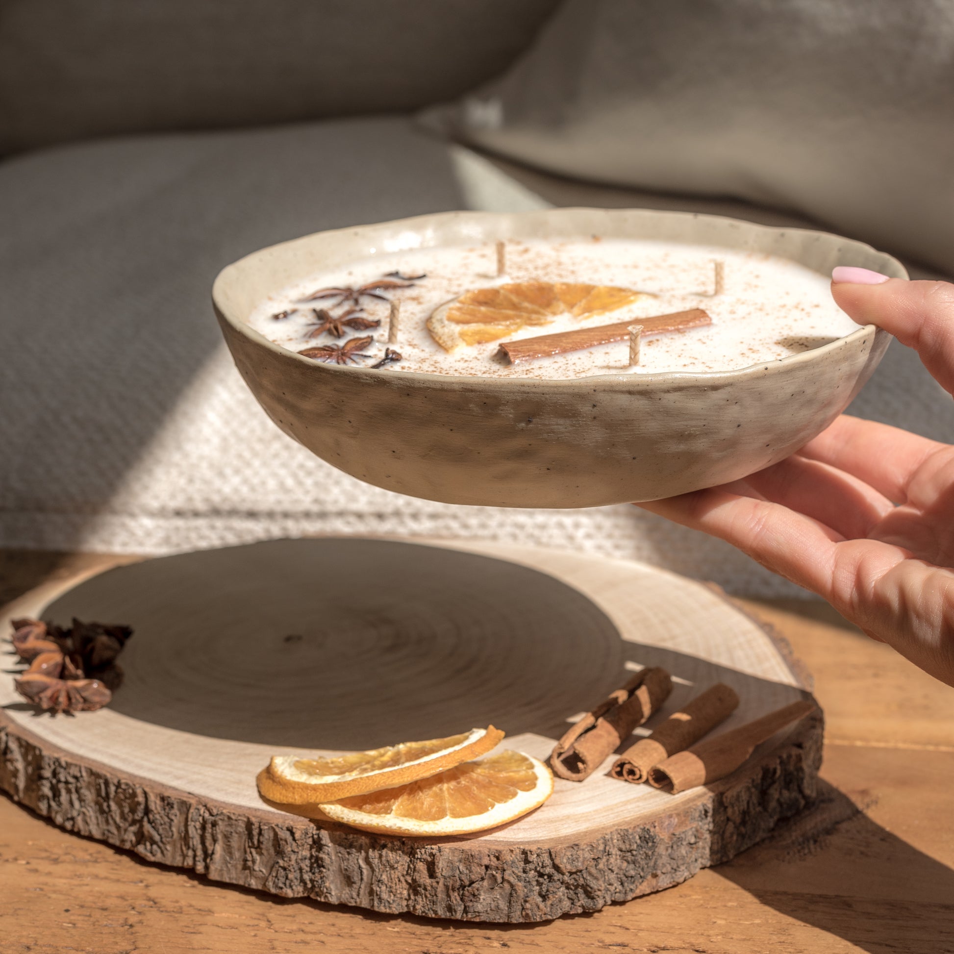 Made with 4 wicks in a ceramic, reusable, decorative bowl. Once your candle is burned, use this bowl as a statement styling piece or for serving your favourite food.