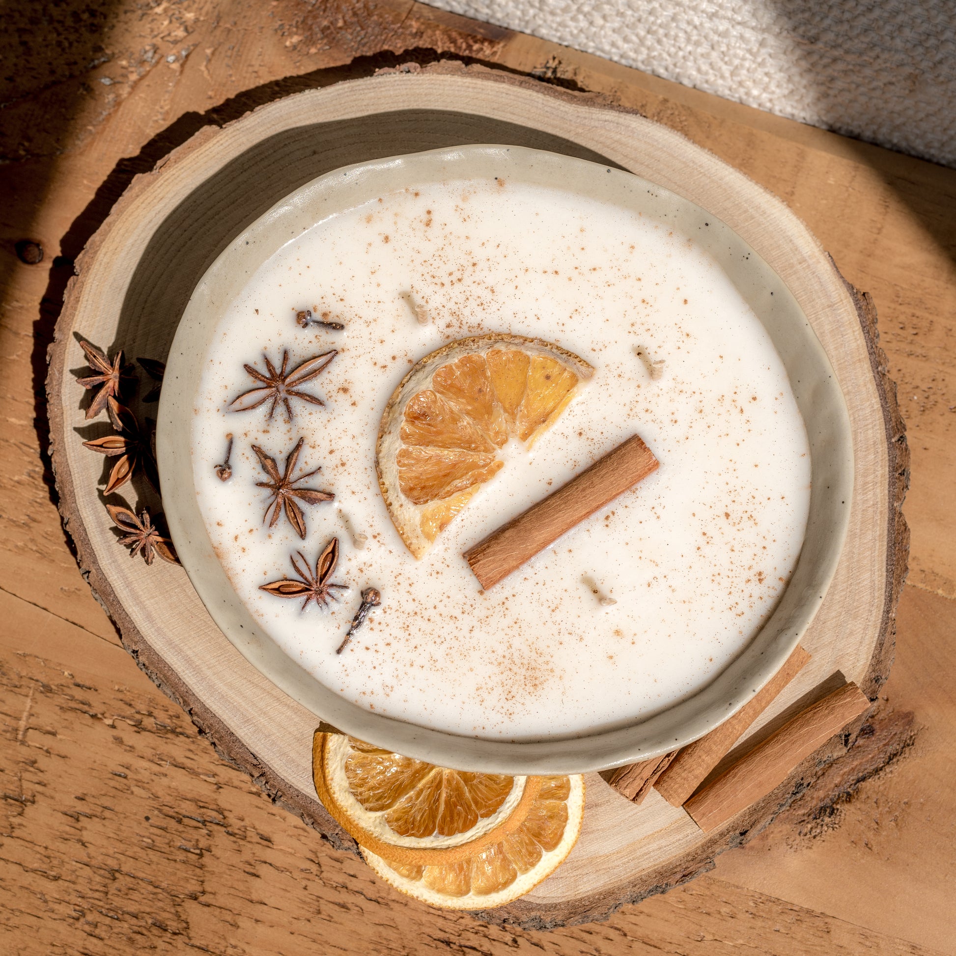 Scent: Festive - spiced orange, apple, cinnamon, clove & nutmeg.