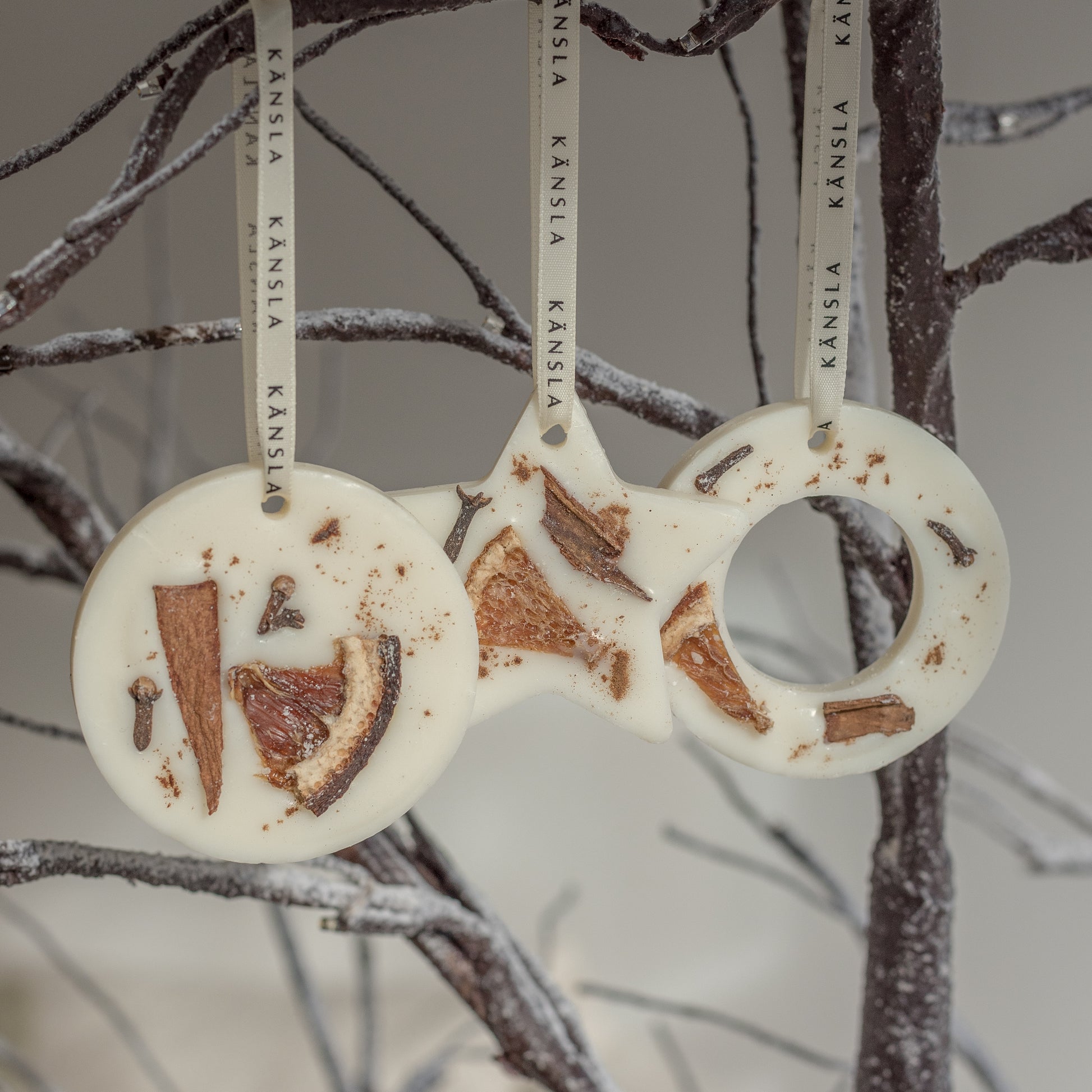 When it’s time to take your tree down, these decorations can be broken up and used in Känsla’s wax melter to re-release the festive fragrance around your home, just remove the ribbon before burning.